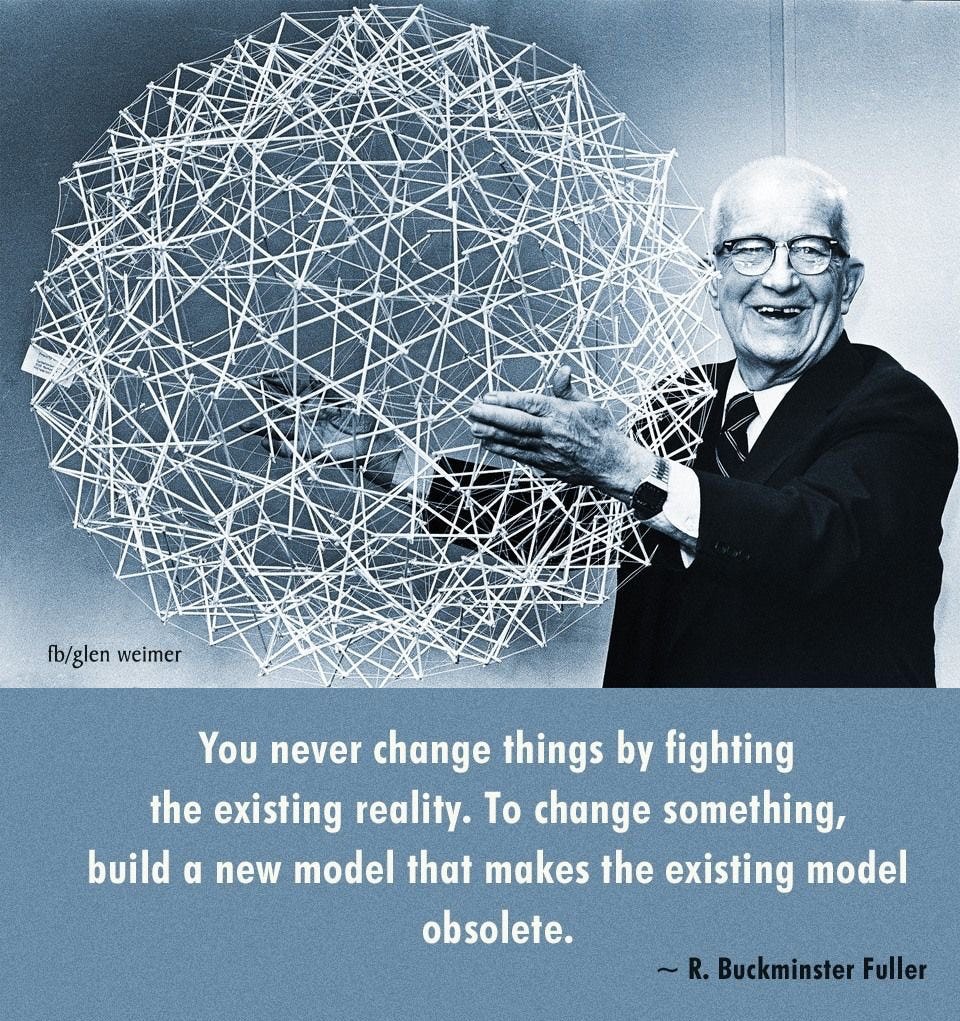 About two years ago I put together a presentation that attempted to capture how the United States was undertaking energy transition, in the context of the country’s historical inclinations. The audience was located abroad, and wanted perspective. I suggested the American way was best articulated by Buckminster Fuller, who explained that it was generally more optimal to create new institutions, new technology, and new products rather than trying to reform incumbents. This is a technology-forward philosophy that’s reflected, for example, in the US approach to EV adoption: all carrot, no stick. This is in contrast with the European approach which uses both carrots and sticks, incentivizing new EV purchases, but also curbing, paring back ICE sales, and ICE miles driven.