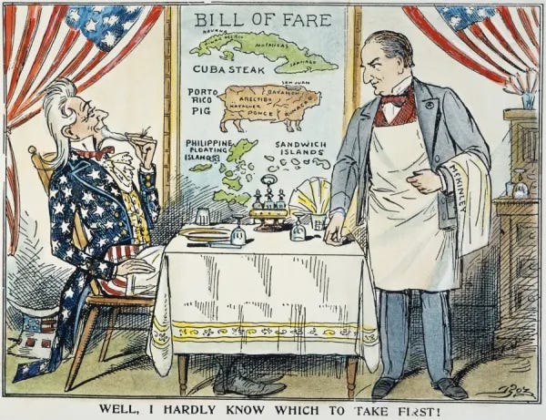 Analysis of irrational people and their intentions is exceedingly difficult, and in Trump we are faced with a kind of mad king, impervious to explanation. That said, readers are encouraged to review the record of President William McKinley, who was in office from 1897-1901. You have no doubt heard about Trump’s fondness for McKinley and his tariff regime (which was a failure by the way). What you may be less familiar with is McKinley’s expansionist record, and his annexations of the Philippines, Hawaii, Puerto Rico, and Guam. If Trump has fantasies or other delusions of grandeur, he may be quite animated by McKinley’s record and that would go some distance to explain his verbal aggressiveness towards Greenland (a territory of Denmark) and the Panama Canal Zone.