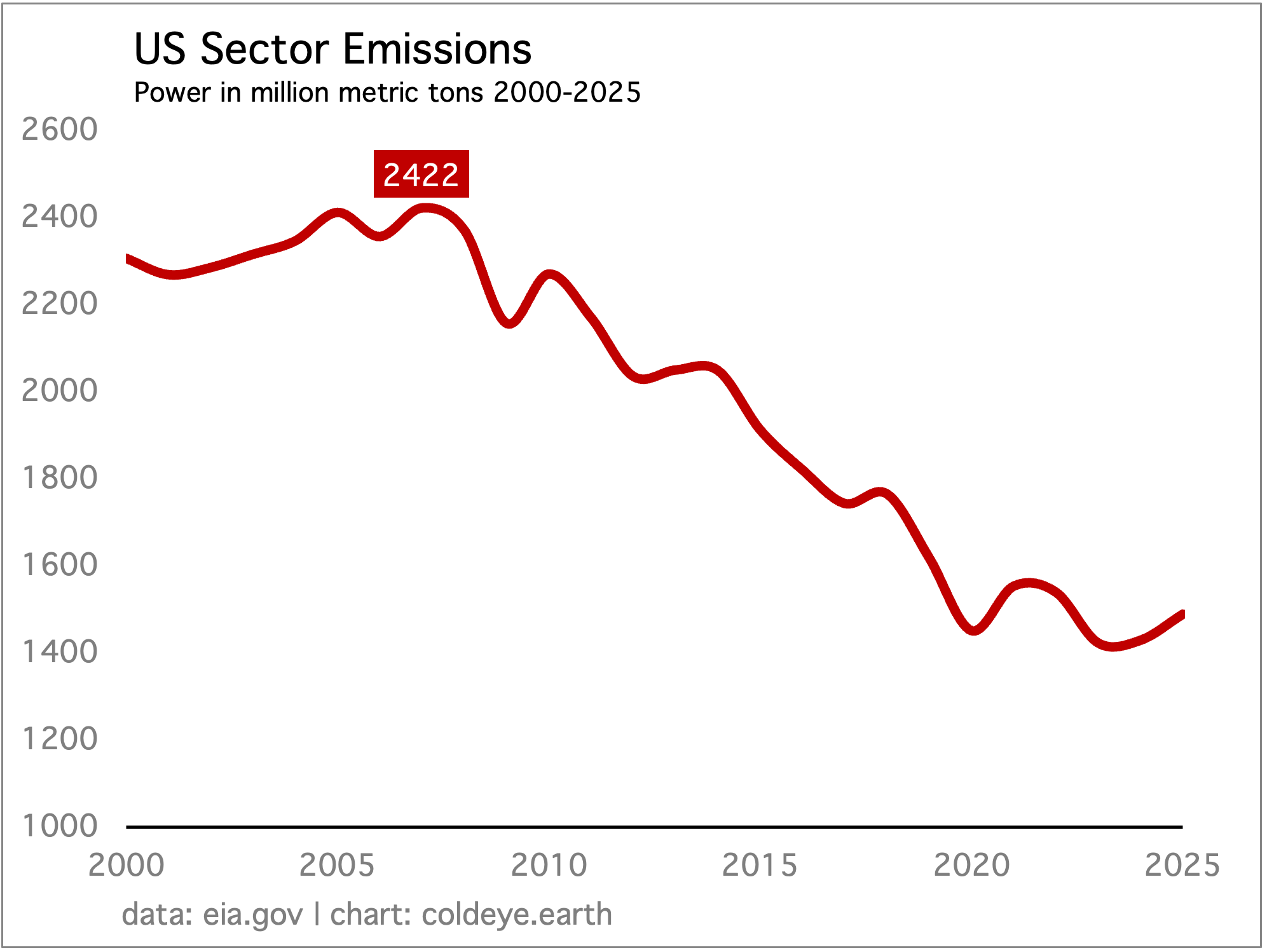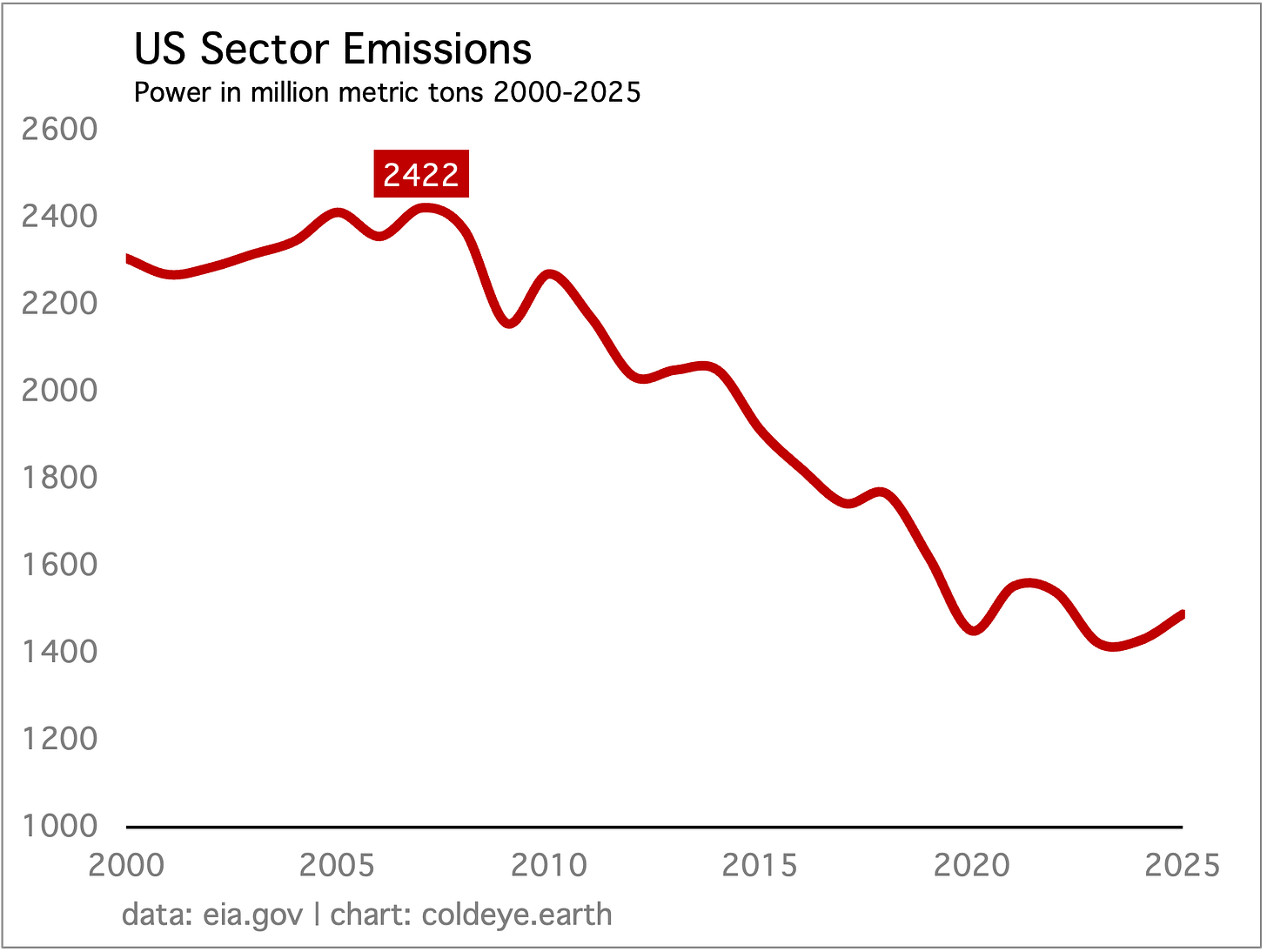 Second, power sector emissions actually rose last year. Coal stormed back into the power sector, causing emissions to rise by 4.2%. There is no question that the transition from coal to a combination of natural gas and renewables has been successful at driving a huge volume of coal out of the system. But the U.S. like many other regions in the world still has extensive coal-fired capacity that can be brought on when needed.