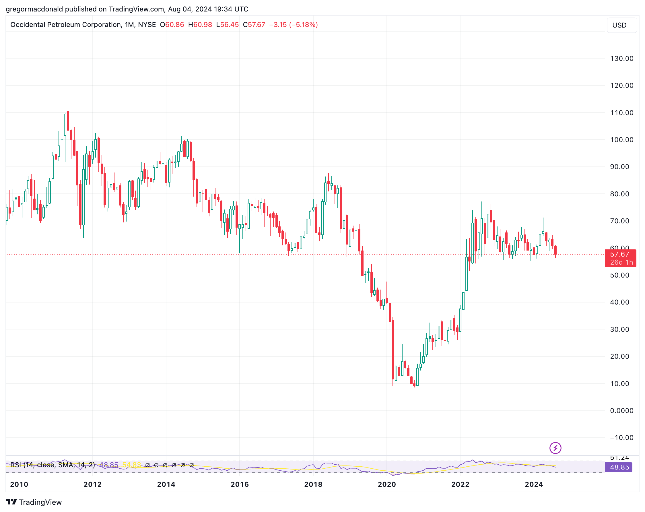 When we speak of the end of growth for the oil market, it’s a concept that begins with actual global demand growth, but also includes the profitability and growth of the corporate oil sector. With the exception of the brief oil price spike during Putin’s initial invasion of Ukraine, most investments in oil have been dead money for years. Take, for example, the extremely well run and pure play Occidental Petroleum (OXY), a favorite of Warren Buffet. Despite Buffet’s ongoing investment and endorsement, OXY has been a non-performing investment for years. Worse, like many other investments in the sector, OXY has barely even kept up with inflation. That fact alone is signaling something additional: the era in which oil and gas investments protected you against inflation is no longer working.